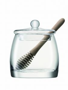 Банка для меда с деревянной ложкой — это изящная и милая вещь, которая добавит уюта любой кухне и придется по душе всем, кто любит готовить. Мелкие пузырьки внутри выдувного стекла не являются браком (,круглые пузырьки Д3 мм и овальные пузырьки Д5 мм) это допустимые индивидуальные особенности изделий, изготовленных вручную.