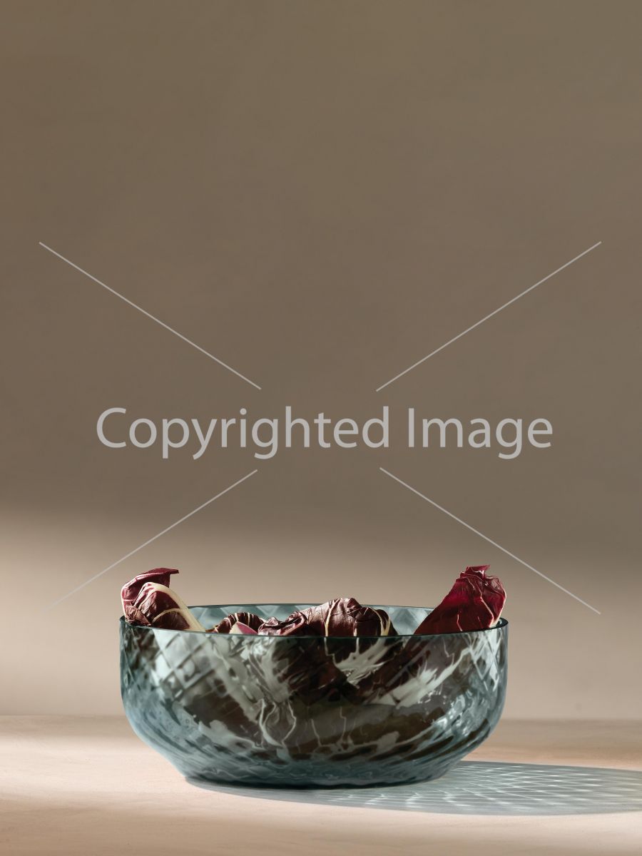 Широкая чаша из выдувного стекла с изогнутыми стенками и волнистой поверхностью. Предназначена для салата или фруктов, а также для использования в качестве самостоятельного декоративного элемента.