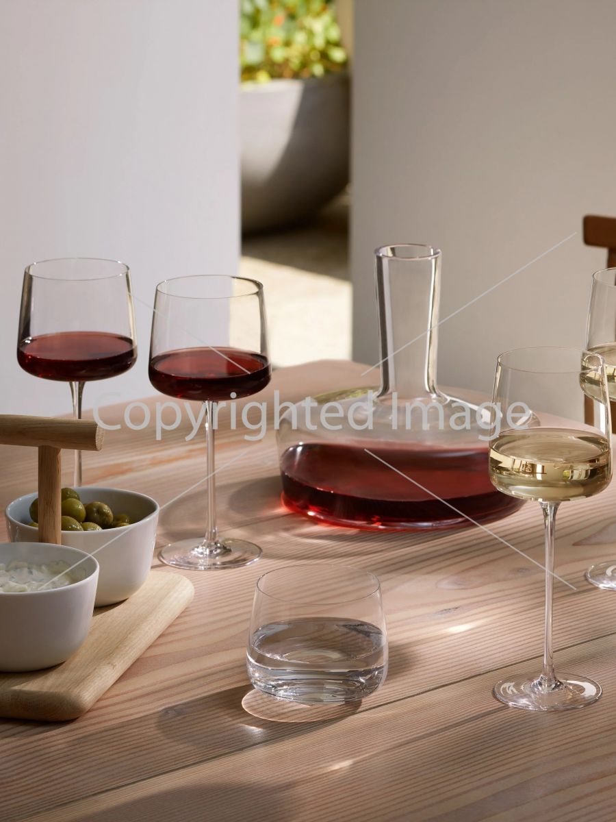 Современный выдувной винный графин Metropolitan от LSA с угловатым профилем, сужающимся горлышком и плоским полированным ободком.