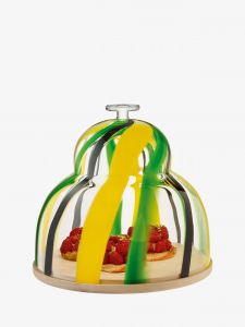 Выдувной сервировочный купол с характерным узором в народном стиле и изогнутой формой. Сидит на основе ясеня ручной отделки, сертифицированной FSC. Предназначен для подачи сыра, печенья и десертов.