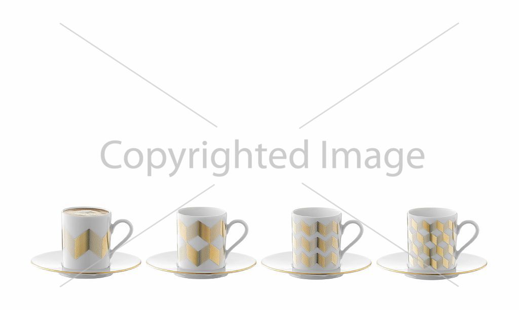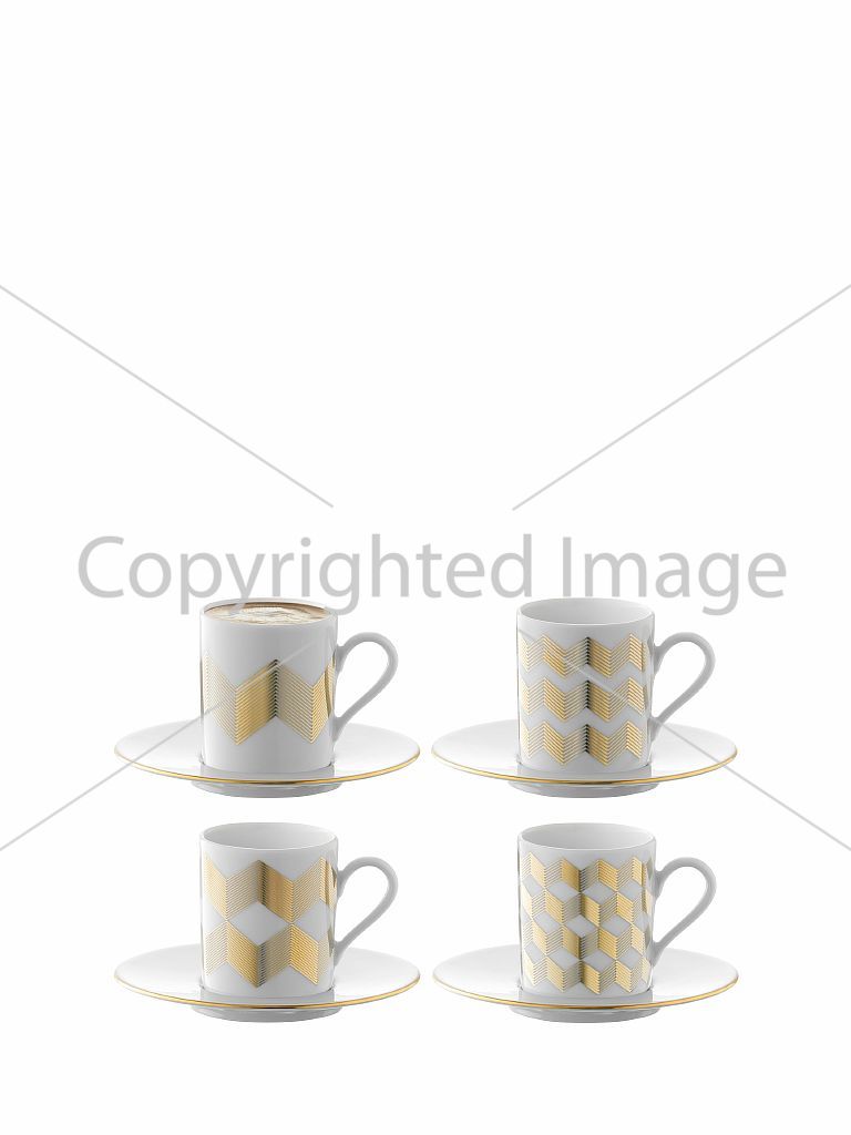 Набор чашек с блюдцами Signature, Chevron, 100 мл, золото, 4 шт., LSA International, арт.:P055-01-146