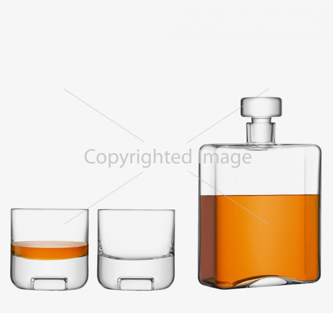 Современный набор для виски, состоящий из графина и двух бокалов. Искусные мастера выдувают графин, придавая ему форму с прямыми сторонами, продолговатую в поперечном сечении, а соответствующую прямоугольную пробку шлифуют вручную для идеальной посадки. Выдувные стаканы имеют форму куба на массивном основании, напоминающем большой кубик льда, и дополняют геометрическую форму графина Cask collection от LSA.