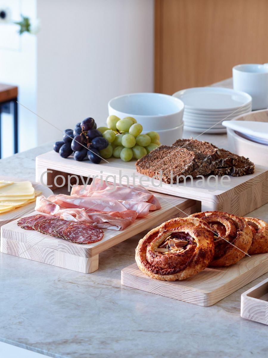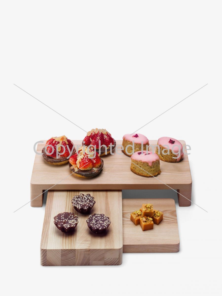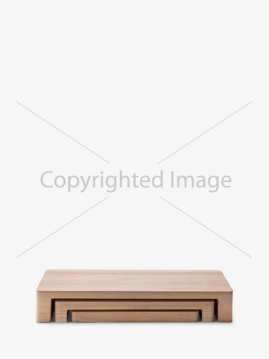 Модульный набор, состоящий из трёх тарелок из ясеня разной высоты. В комплект входят две подставки и одна тарелка, которые аккуратно складываются друг в друга. Элементы можно использовать по отдельности или в наборе, располагая их в несколько ярусов. Универсальный и современный сервировочный предмет для разных кухонь, интерьеров и случаев.