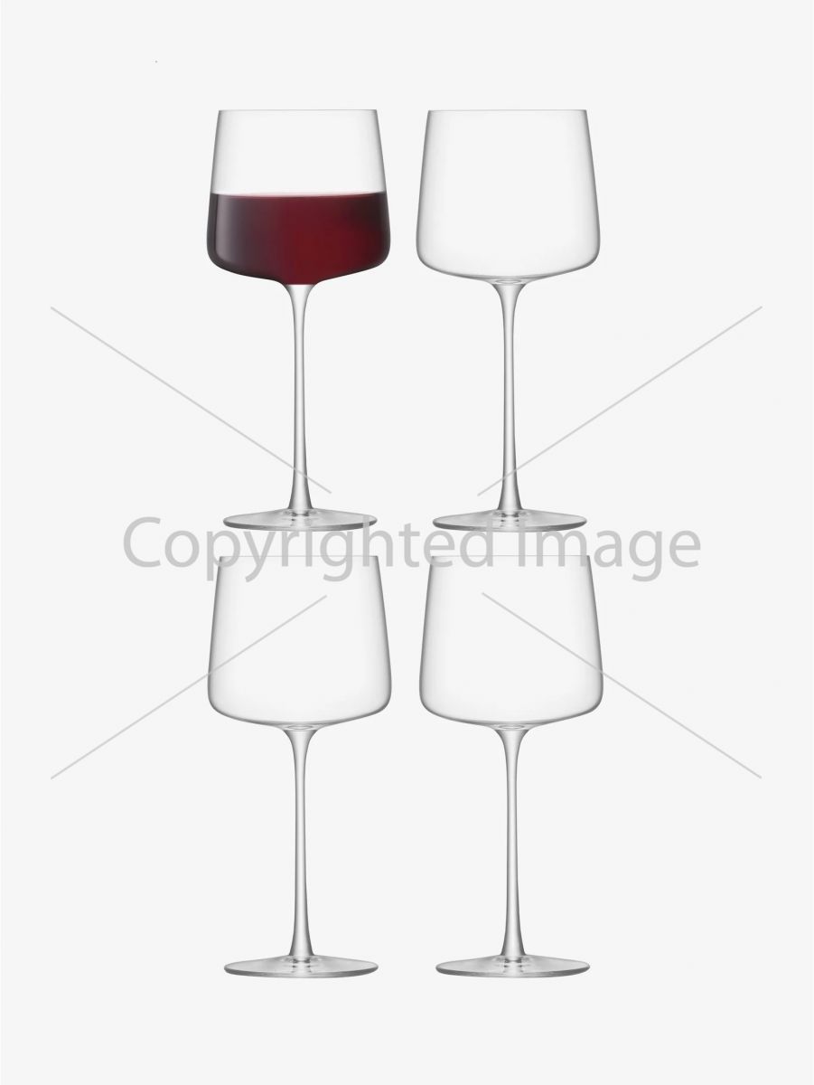 Набор из четырех современных бокалов для красного вина Metropolitan от LSA на высоких элегантных ножках. Большая угловая чаша сужается к тонкому ободку. Изготовлен из бессвинцового кристаллического стекла для прозрачности и прочности.