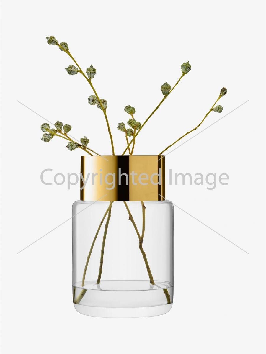 Ваза из выдувного стекла, которая воспроизводит теплые, отражающие свойства драгоценного золота. Цилиндрическая форма расписана вручную полосой из настоящего золота, которая тонко подчеркивает ступенчатый силуэт. Предназначена для смешанных букетов или нескольких крупных цветочных головок.