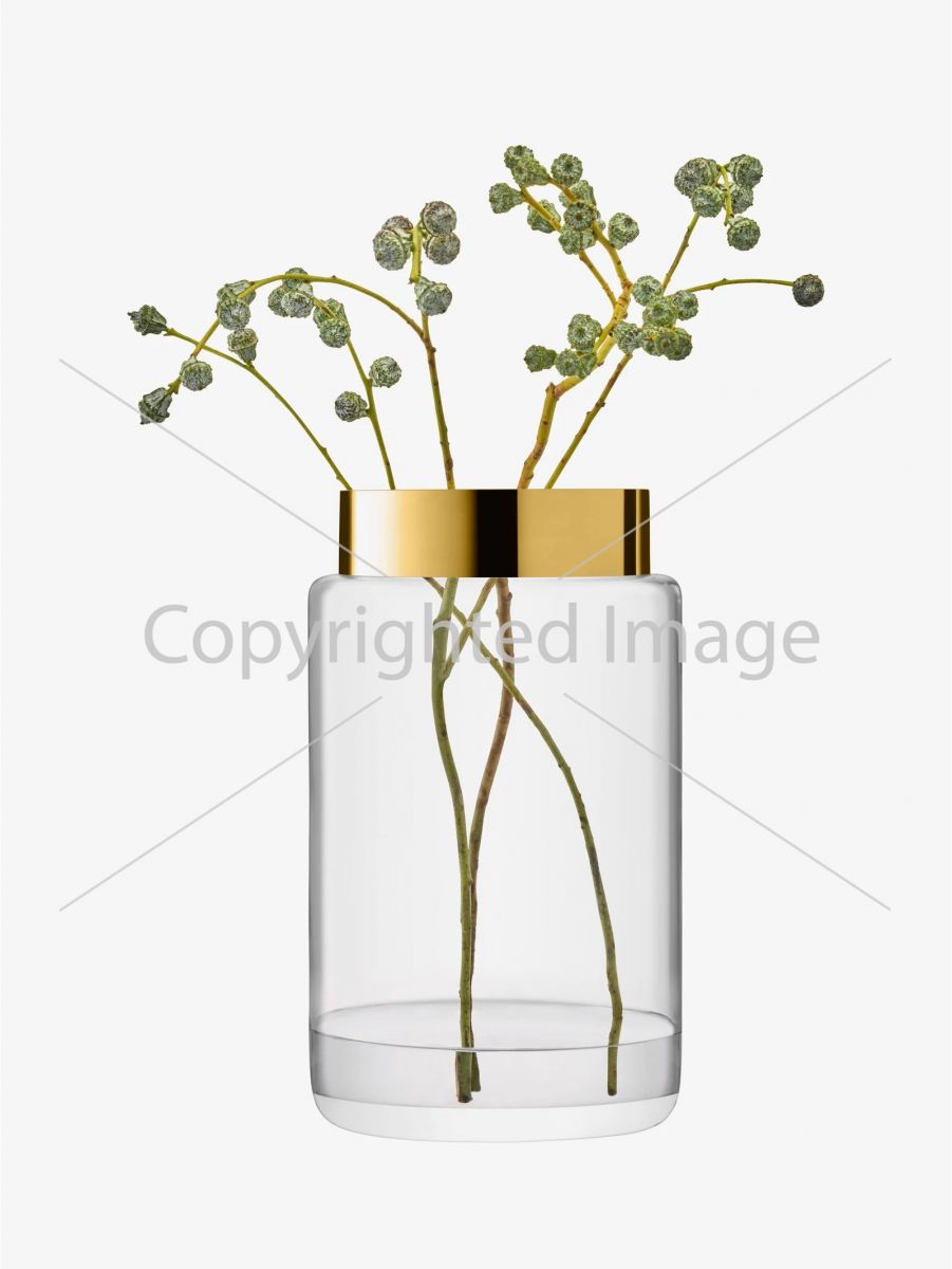 Ваза из выдувного стекла, которая воспроизводит теплые, отражающие свойства драгоценного золота. Цилиндрическая форма расписана вручную полосой из настоящего золота, которая тонко подчеркивает ступенчатый силуэт. Предназначена для больших букетов или нескольких веток листвы.