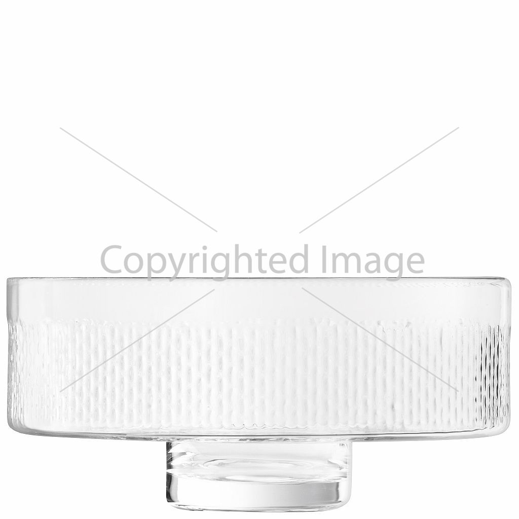 "Сервировочное блюдо цилиндрической формы на элегантной ножке подойдет для подачи фруктов и десертов. Текстура изделия напоминает плетение из лозы.