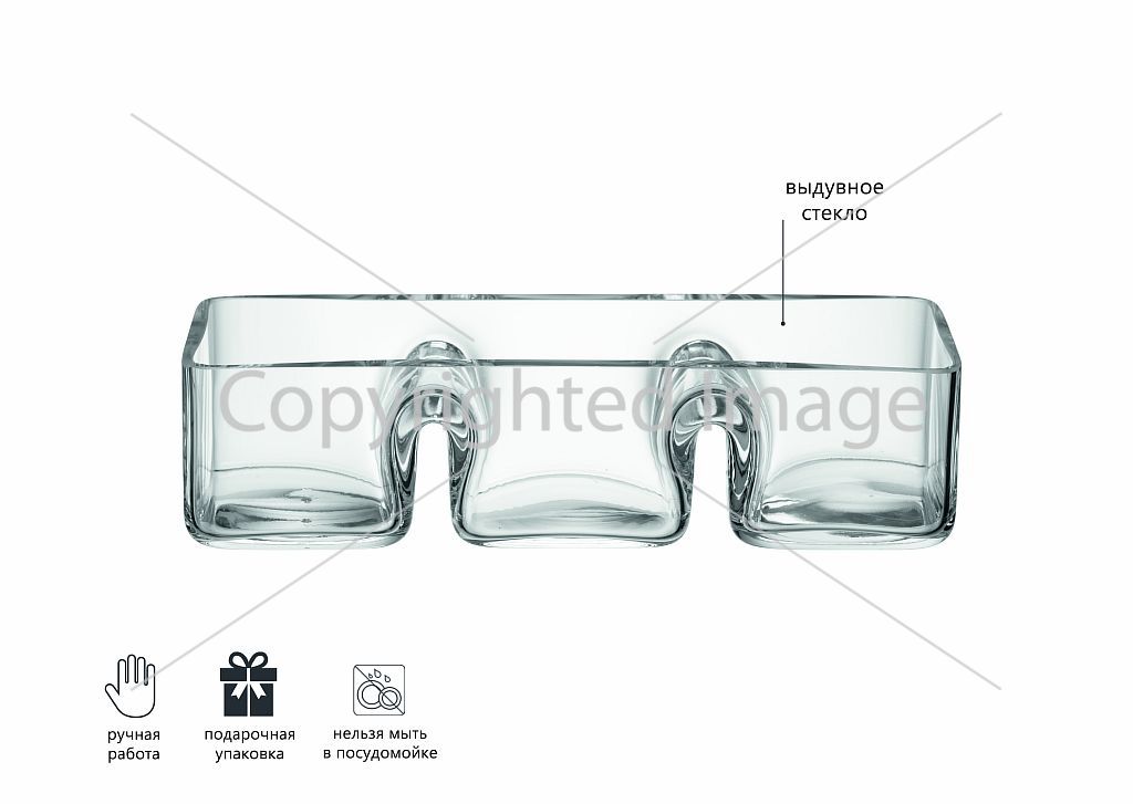 "Менажница для закусок из стекла ручной работы идеально подойдет для сервировки оливок, орехов, сухофруктов, конфет, крекеров и т.д. Классический дизайн делает менажницу универсальным столовым аксессуаром, который подходит для подачи самых разных блюд. Практичная и стильная деталь, которая придется по душе всем, кто любит устраивать домашние вечеринки.
